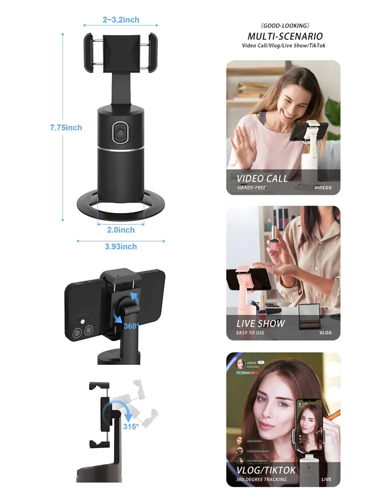 Never miss a shot again with this auto tracking phone holder, designed to follow your movements and keep you in frame, ensuring perfect videos and selfies every time.