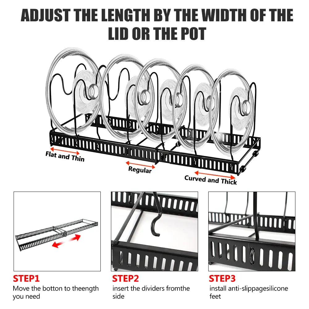 Transform your kitchen into a clutter-free haven with our Cookware Storage Rack. Designed to hold all your pots, pans, and lids, this rack helps you utilize vertical space efficiently, giving you more room for cooking and creativity.