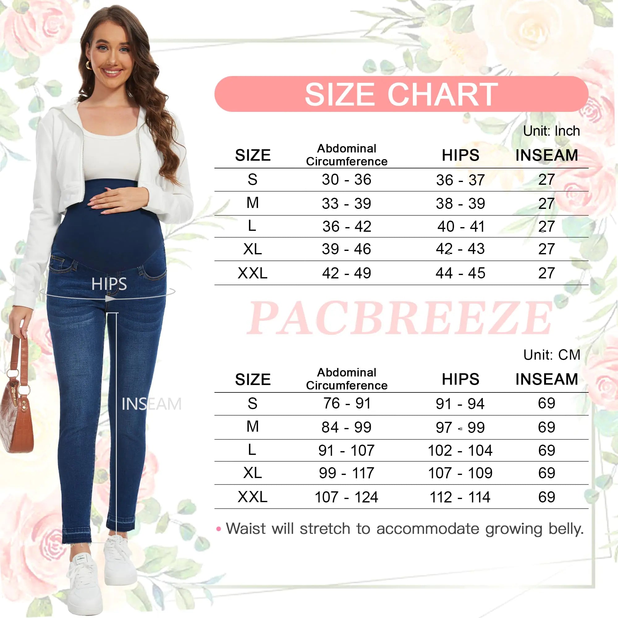 PACBREEZE Women's Maternity Jeans Over Belly Skinny Stretchy Denim Pants Comfy Slim Pregnancy Pants