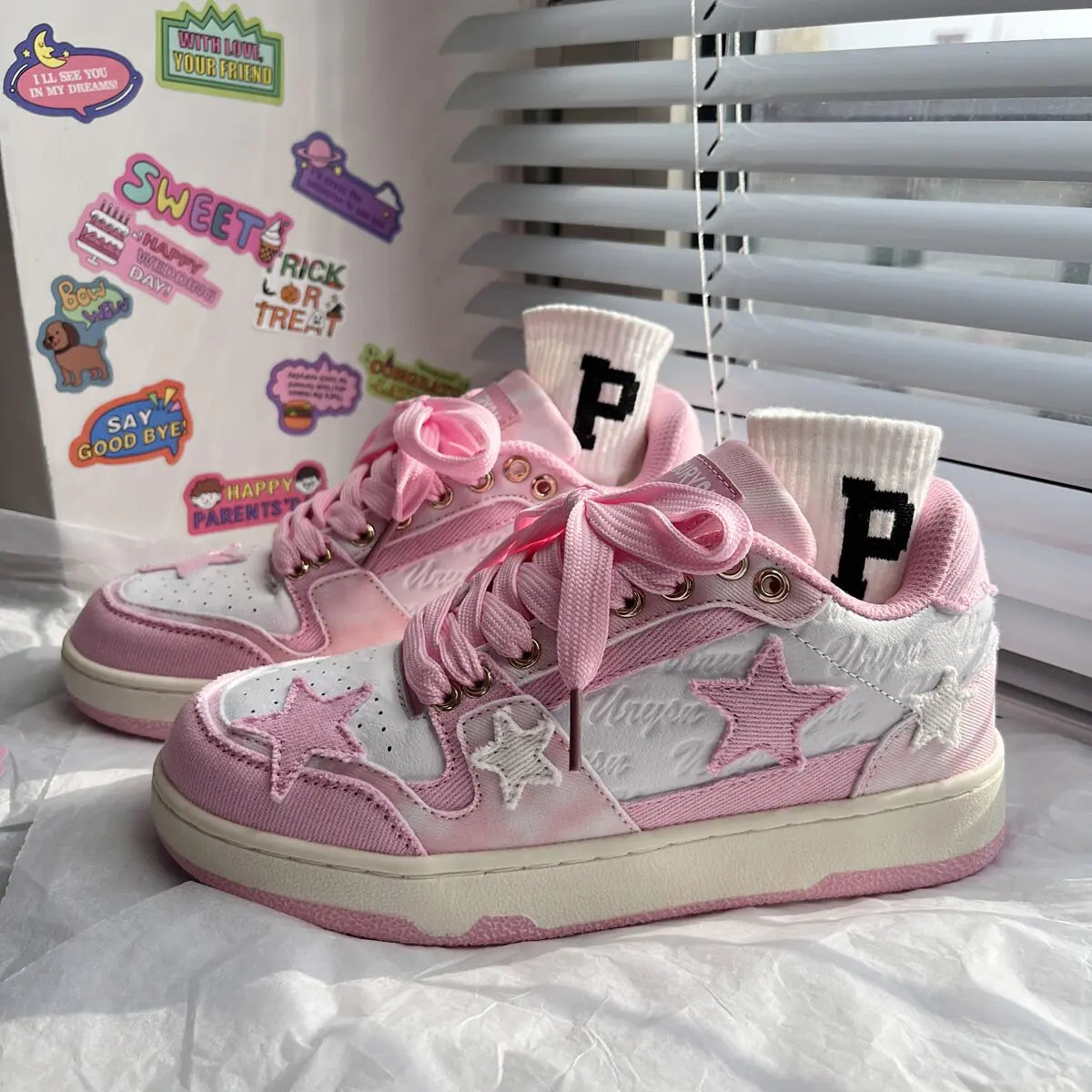 Whether you're hitting the tennis court or running errands, Pink Kawaii Tennis Sneakers for Women are the perfect choice. Their versatile style transitions seamlessly from athletic activities to casual outings, ensuring you look chic and stylish wherever you go.