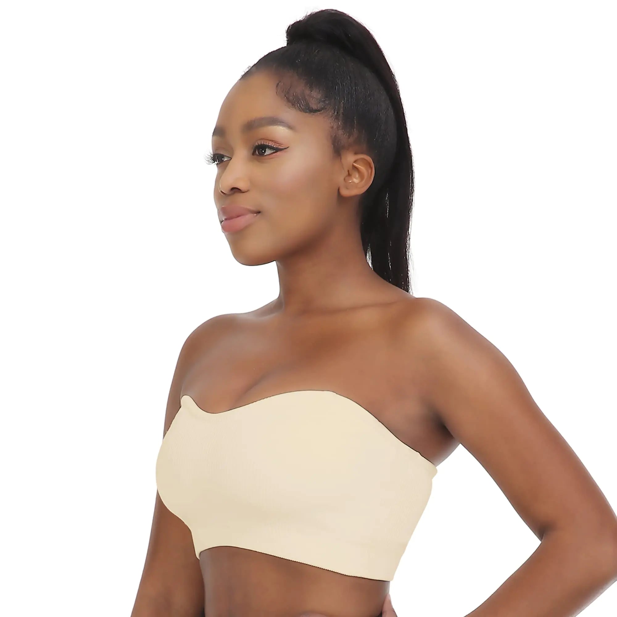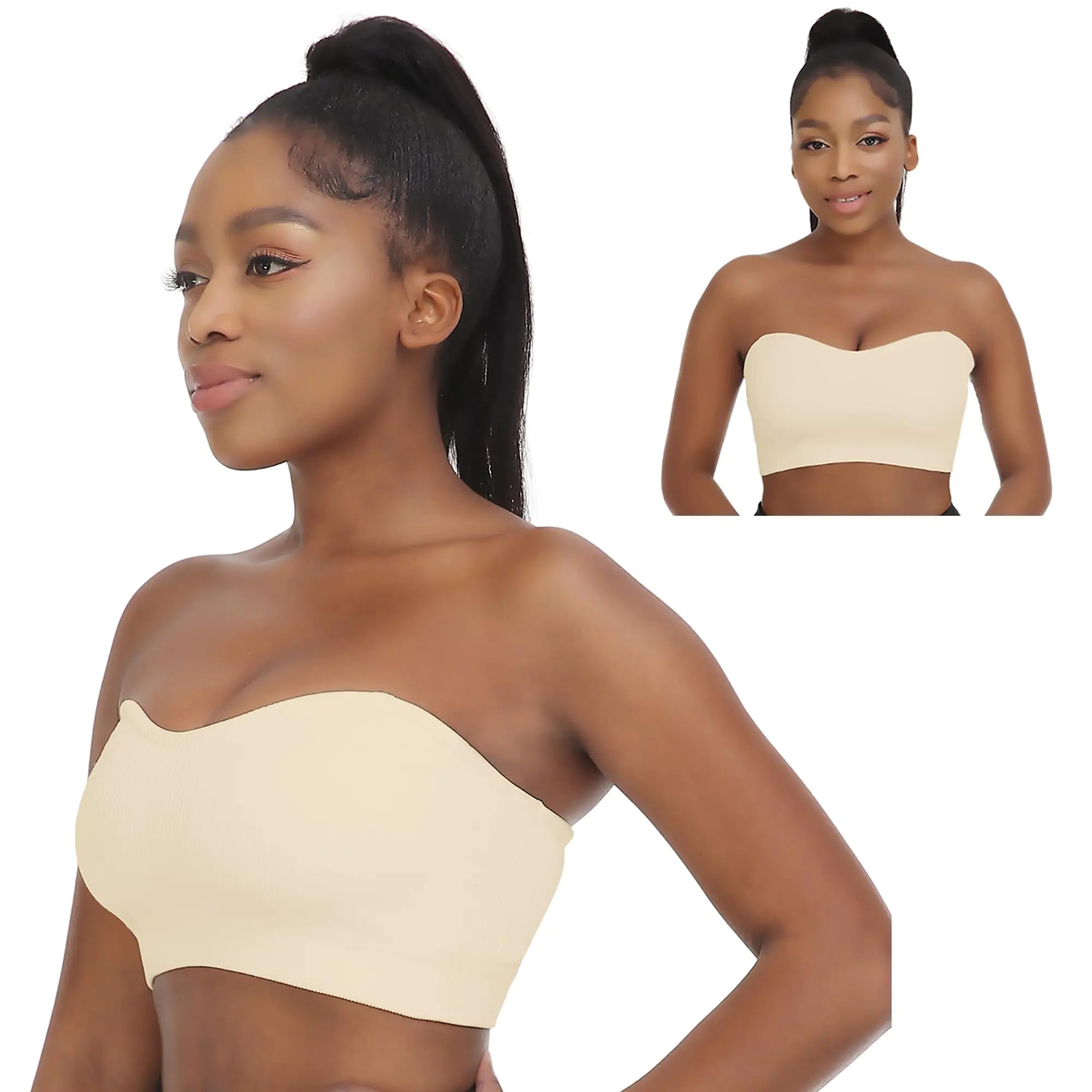 Women's Strapless Bra Comfortable Non-Slip Silicone Bandeau Bra Seamless Tube to Bra Medium Beige+beige