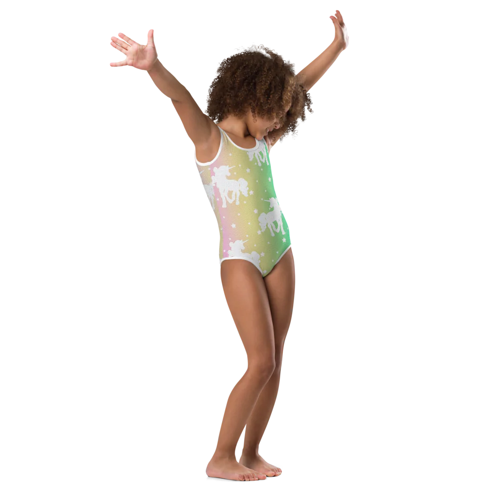 This girls' swimsuit has it all - comfortable fit, elastic fabric, and a deep-colored print that won't fade in the sun and water. The double-layered front, bias binding, and 38–40 UPF ensure that the kids can be their active selves, and the parents don't have to worry about any wardrobe malfunctions. • 82% polyester, 18% spandex • Fabric weight: 6.78 oz/yd² (230g/m²), weight may vary by 5% • UPF 38–40 • Double-layered front • Four-way stretch material stretches and recovers on the cross and lengthwise grains • Bias binding in black or white • Sewn with an overlock stitch • Smooth and comfortable microfiber yarn • Blank product components in the US and Mexico sourced from China • Blank product components in the EU sourced from China and Poland Please note that contact with rough surfaces and velcro fasteners should be avoided since they can pull out the white fibers in the fabric, damaging the swimsuit’s appearance.
