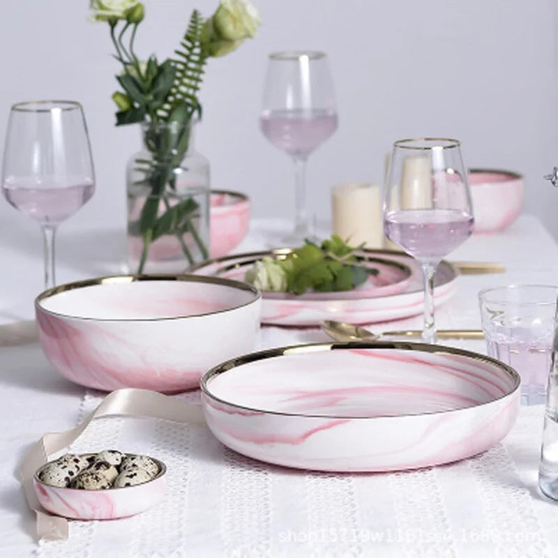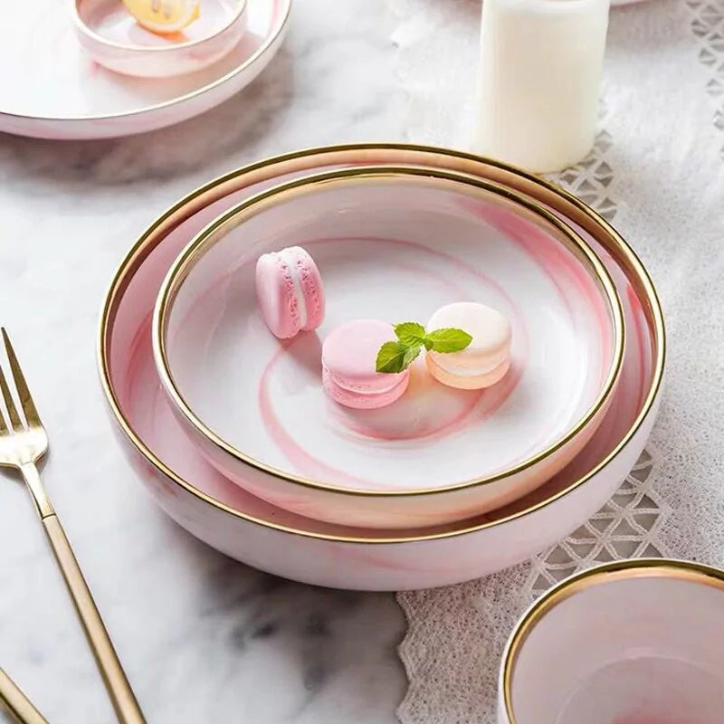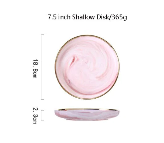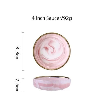 Ideal for those who appreciate distinctive tableware, this set will make a statement at any meal, whether it's a casual family dinner or a more formal gathering. Add a splash of luxury and style to your table setting with our exquisite pink marble plates and turn every meal into a special occasion.